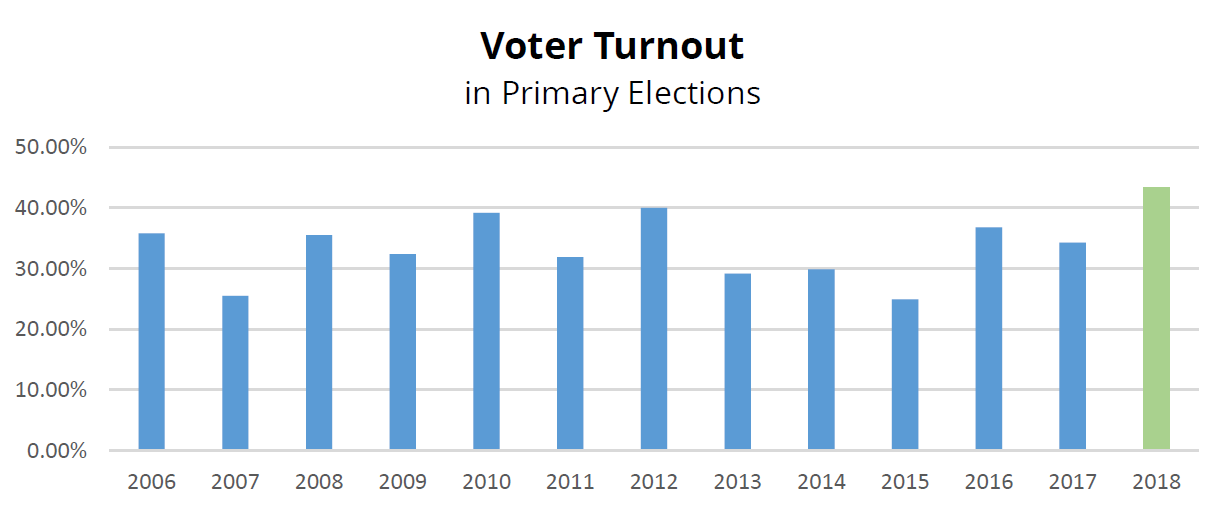 2018 Primary Election: Voter turnout exceeds projections as prepaid postage launches countywide